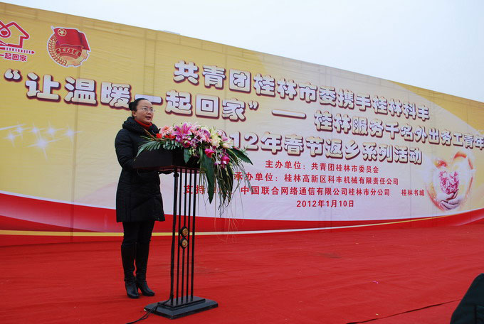 1月10日,團(tuán)桂林市委攜手桂林科豐在市中心廣場(chǎng)舉行“讓溫暖一起回家”桂林服務(wù)千名外出務(wù)工青年春節(jié)返鄉(xiāng)系列活動(dòng),市人大常委會(huì)副主任魯圣發(fā)出席,并為優(yōu)秀進(jìn)城務(wù)工青年頒獎(jiǎng)。