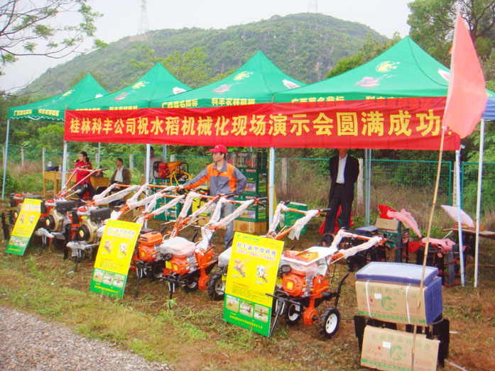 科豐公司受邀參加4月23日桂林市人民政府在臨桂縣四塘舉辦的《桂林市2012年水稻機(jī)械化插秧現(xiàn)場演示會》,桂林市副市長王建毅、市農(nóng)機(jī)局局長毛義德,臨桂縣委書記彭代元,縣委常委、縣紀(jì)委書記劉修榮出席會議。全市12個縣的分管領(lǐng)導(dǎo)、農(nóng)技服務(wù)中心主任、農(nóng)機(jī)管理員、農(nóng)機(jī)大戶和糧食種植大戶代表等共500多人參加了現(xiàn)場演示會;科豐展出的“科豐牌”多功能收割機(jī)、多功能微耕機(jī)、噴霧機(jī)等現(xiàn)場演示得到在場人員的一致肯定。
